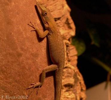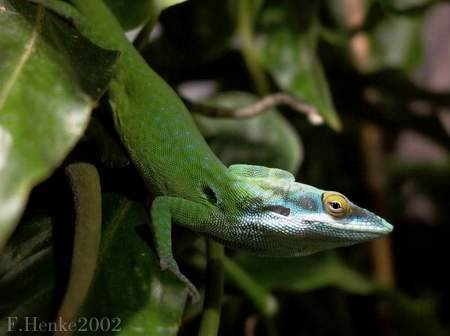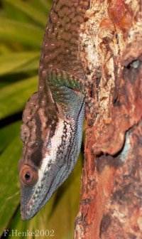 Zucht: Zur Eiablage sucht das Weibchen den Bodengrund auf, wo es die Eier ca. 2-5cm tief vergräbt. Als Bodensubstrat eignet sich am besten ein Blumenerde- Sandgemisch. Wenn feuchte bepflanzte Stellen in der Rückwand oder auf Epiphytenästen vorhanden sind, werden dort die Eier zwischen den Wurzeln vergraben. Diese Plätze werden wahrscheinlich aufgrund der höheren Temperaturen vorgezogen. Die Gelege bestehen aus ein bis zwei Eiern, die alle 3 bis 6 Wochen in der Hauptaktivitätszeit abgelegt werden. Dabei können die Weibchen bis zu 20 Eier im Jahr ablegen. Die Inkubationszeit beträgt bei einer Temperatur zwischen 22-25C°, 60-70 Tage. Temperaturschwankungen (Tag/Nacht) schaden den Eiern nicht.