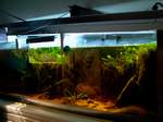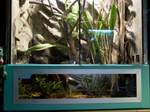Alle Aquarien sind mit offenen Biofiltern ausgerüstet. Das Filtermaterial ist in der Hauptsache Blähton, den es in jedem Gartencenter gibt. Auch bei der Auswahl der Filterbehälter ist der Phantasie keine Grenzen gesetzt. Da kommen große Sortierkästen oder sogar Werkzeugkästen zu Rieselfiltern umgebaut in den Einsatz. Lampen sind auch hier wieder Leuchtstofflampen mit elektronischen Vorschaltgeräten und HQI Lampen. Bei den Leuchtstofflampen bevorzuge ich die Lichtfarbe "Tageslicht/Daylight". Mit der Abwärme der Vorschaltgeräten werden Futtertierzuchten geheizt, oder ein Teil des Bodens im Savannenterrarium erwärmt. Kein Watt muß verloren gehen. Solche Arbeiten sind aber ausschließlich vom Fachmann durchzuführen. Man darf nie die Wirkung von Strom und Wasser, oder die Brandgefahr unterschätzen! Bei der elektrischen Versorgung von Aqua und Terrarien ist die Verwendung eines FI Schutzschalters zu empfehlen.