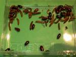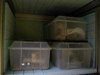 | Ernährung: Gefüttert wird abwechslungsreich. Als Hauptfutter bevorzuge ich in den letzten Jahren die Wachsmotte und ihre Raupen. Die Wachsmottenraupen lassen sich in allen Größen optimal mit Vitaminpräparaten bestäuben und verfüttern. Außerdem gibt es bei mir kein Tier, welches diese Nahrung verschmäht. Aber Vorsicht vor einer Überfütterung, Wachsmotten und deren Raupen sind sehr kalorienreich. Gerade bei Jungtieren haben die Fruchtfliegen (Drosophila) einen großen Stellenwert. Desweiteren werden die kleinen Mehlwürmer (Buffalos) und Ofenfischchen verfüttert. Regenwürmer und Nacktschnecken sind die Lieblingsspeise der Nackenstachler (Acanthosaura). Grillen ergänzen die Speisekarte, was käufliches b.z.w selbst zu züchtenes Futter angeht. Vornehmlich in den Sommermonaten wird reichlich Wiesenplankton verfüttert. Allerdings ist es wichtig die Wiese zu kennen, auf der man Plankton keschert. Sollte dort gedüngt oder sogar Pestizide eingesetzt werden, ist das Risiko für unsere Pfleglinge zu groß. |