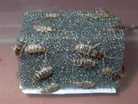 Ofenfischchen lieben die Dunkelheit, und können somit ohne Lichtzufuhr auskommen. Die Weibchen legen in regelmäßigen Abständen 5-40 Eier ab. Bei richtigen Temperaturen und Luftfeuchtigeitswerten schlüpfen die Jungen nach 14 Tagen. Die Entwicklungszeit bis zum ausgewachsenen Tier beträgt 3-6 Monate. Das Futter besteht aus Zellulose, Zucker und Stärke. In einem Schälchen bietet man somit Fischfutter, Gemüseflocken (Hundezusatzfutter), oder Haferflocken in geringen Mengen an. Den Feuchtigkeitsbedarf decken wir über einen Wasserbecher, den wir fest mit einem Tuch verschließen. Der Stoff verhindert das Ertrinken der Fischchen, und ermöglicht eine gleichmäßige Verdunstung. Besonders geeignet sind Becher mit einer großen Öffnung. Ofenfischchen decken ihren Wasserbedarf über die Luftfeuchtigkeit des Zuchtbehälters. Schwitzwasser an den Behälterwänden muß allerdings vermieden werden. Dies kann man über die Größe der Lüftungsflächen steuern.